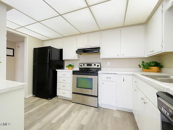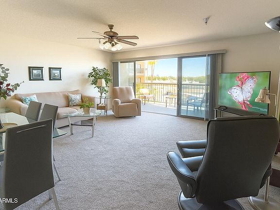 Well maintained furnished 2nd floor condo in desirable Sunland Village. Enjoy the ''birds eye view'' of gorgeous distant mountains, sunsets, & city lights from the west facing balcony. Updated in 2025 - Refreshed kitchen with white cabinets, new countertops, & stainless steel sink/faucet, new Waterpoof Luxury Vinyl Plank flooring in the kitchen/entry, and laundry room, new carpets throughout, and updated doors to white and finished with brushed nickel. Sunland Towers is a pristine pet free, 55+ community nestled within Sunland Village. Includes one parking space and a storage unit in the underground garage and a separate storage unit on the 2nd floor. A secure lobby and garage with elevator access. Perfect for a lock and leave visitor or a full time resident. Carefree Living at its best Sunland Village features a beautiful public golf course. The Community offers many activities, clubs, games, sports, and hobbies. The Master Association provides space and equipment and the use of workshops, for Woodworkers, Ceramics, Lapidary, and Stained Glass. The new "Fiber Arts" building will provide ample space and electricity for the Quilters Club among other hobbies. The Billiards Club has ongoing tournaments and gatherings. Try Tennis, Ping Pong, Pickle Ball, Golf, Bocci Ball, or Shuffleboard. The community offers 3 heated pools and spas and a work out facility to use at your convenience. Some of the things on the Activity Calendar include: Bingo, Dance parties, Ice cream social, Movie Night, Trivia Night, live music and so much more.