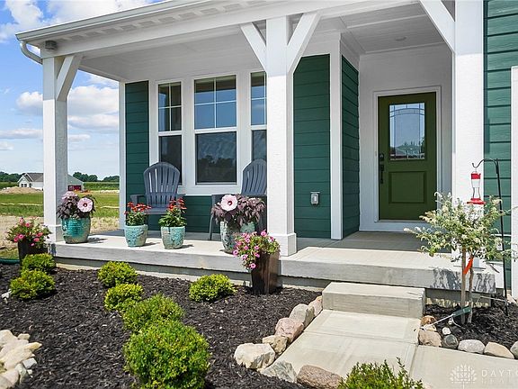 Imagine waking up to beautiful pond and fountain views from your very own covered front porch, in Yellow Springs' new Spring Meadows neighborhood! This thoughtfully upgraded, totally move-in ready home offers the perfect blend of serenity and convenience, and is ideally situated in YS just minutes from Wright-Patterson Air Force Base, Wright State University, and major highways including I-675 and I-70. Step inside to discover an elegantly designed home with soaring ceilings, expansive architectural enhancements, and oversized windows that flood the space with natural light. High-end finishes include pristine quartz countertops, solid wood trim, and stylish details throughout. At the heart of the home lies a spacious, open-concept kitchen designed for both function and flair. Featuring extensive cabinetry, with 42” uppers and soft close hinges, generous counter space, a large island, and a walk-in pantry, it’s the perfect hub for entertaining or everyday living. The private Primary Suite serves as a luxurious retreat, complete with dual vanities, a garden tub, a walk-in shower, and a sizable walk-in closet with organizers. Additional amenities include a well positioned built-in mudroom, laundry room with blue front loading washer and dryer set (see photo), which will convey with the home. The fully fenced backyard with oversized patio provides the perfect space for outdoor enjoyment. The expansive full basement offers endless possibilities, and is already plumbed with rough-ins for a third full bath. Natural light pours in through the large egress window with an integrated ladder, making this versatile space ideal for additional bedrooms, home office, gym, tv, room, or artist's studio, etc. Over $140,000 in builder upgrades and owner improvements--please ask your agent to provide you with an extensive list of additional information and attachments. Don’t miss your chance to own this exceptional property where peace and practicality meet in perfect harmony.