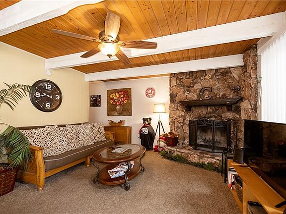 This lovely 2- story 2-bedroom, 1-bath home is a tremendous investment property, full-time or part-time home. The entry area features a game room entering into a great living room with a rock fireplace, Rinnai heater, and room for everyone. The kitchen is complete with stainless steel appliances and allows access into the separate laundry room which is being used as another sleeping area. Both bedrooms upstairs are spacious with generous closets. There is a fenced backyard and the property has been well maintained. Great location in a great neighborhood, close to the trails at the top of Sugarloaf! Minutes to the Big Bear Lake shopping, restaurants, and all the attractions of Big Bear Lake.