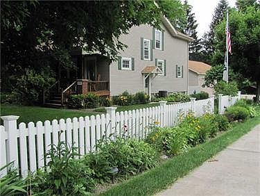 Your family + 3 BR, 2 BA house + big garage = HOME This house is special with a large kit/DR combo, fam rm, lvng rm on the first floor, BR, BA up. Hardwood floors have been refinished, interior recently painted. The bsmt is dry with a bar area for games and TV. Exterior is vinyl. The side yard is a corner lot, very private, has a fire area, covered patio off the gar. A new cement driveway, 4 car heated gar with amenities has room for all your vehicles and toys.Workbenches not incl, holly bush not incl.