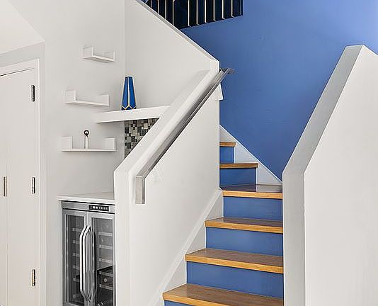 The upper level hosts the serene, south-facing primary bedroom with room for a sitting area, a generous fully built-out walk-in closet, and a luxurious five-fixture ensuite bathroom. The secondary bedrooms are equally comfortable in size; one includes its own ensuite bath and access to a private balcony. Additional highlights include custom-designed storage throughout, multi-zone HVAC, automated shades, and a large-capacity washer/dryer.