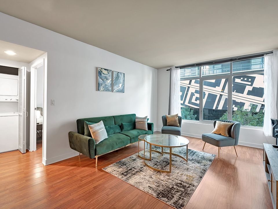 Discover the perfect blend of comfort and city living in this stunning condo. The spacious, open living area is adorned with hardwood flooring and features floor-to-ceiling windows, flooding the space with natural light and offering spectacular city views.
