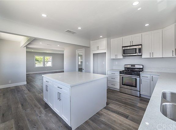 Gorgeous 10+ showcase home with decorator touches throughout minutes to the ocean!! This 6 bedroom & 3 bathroom home was remodeled in 2017 and boasts a cooks' kitchen w/quartz counter tops, brand new stainless-steel appliances - built-in microwave hood, free standing range and dishwasher plus an oversized island eating area and large walk-in pantry! There is new flooring and fresh paint throughout, a spacious living room and family room and bedrooms with lots of closet space and some with walk-in closets. One of the downstairs bedrooms can double as a guest suite/office/studio with an exterior access door. The bathrooms have been updated with subway tile, new vanities, new lighting and tile floors. Lots of natural light flows in this home with the new energy saving double-pane windows and glass door slider. Other energy saving features include recessed LED lighting and some low-flow plumbing fixtures! There is Central Heating and Air Conditioning, smooth ceilings and an oversized finished 2-car garage. Great location - centrally located and only minutes to parks, schools, the mall & freeways and the OCEAN!