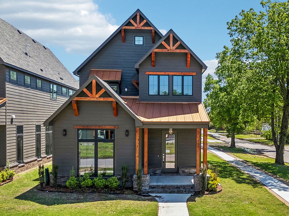 Welcome to this new construction home in desirable and charming Rose District of Broken Arrow. Nestled in a walkable neighborhood with mature trees, this two-story residence offers ample space for modern living. The home features open concept living, kitchen and dining area, plenty of room for comfortable living. Enjoy relaxing on the covered front porch or one of the balconies off of the master and front bedrooms, both flooded with natural light. Situated on a landscaped corner lot, this home also offers a versatile, dining or flex room on the first level and energy systems throughout. The extra large garage includes a convenient rear entry adding to the homes practical and spacious design. Builder/broker.