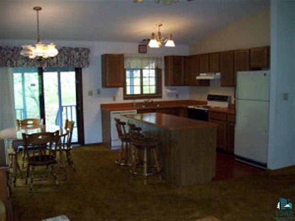 This home has a lovely, private setting on the edge of Washburn's hillside area. House is well maintained and has new siding, all new windows and new furnace. Charming back porch. Acreage is nicely wooded and has fruit trees, berries and a fenced vegetable garden. Large 3-stall garage has 8' doors and a 28 x 44 heated workshop.