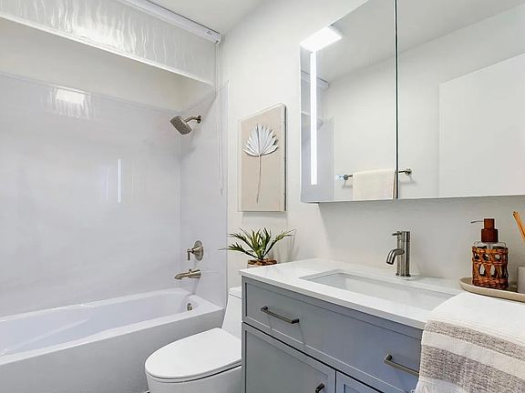 Amenities include simulated wood flooring, central heat and air conditioning, recessed canned lighting, spa-like bathrooms and a gourmet chef's kitchen. Enjoy higher-end stainless steel appliances, quartz countertops, subway tiled backsplash and custom soft-close bright white cabinetry.