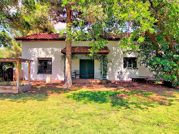 Rare opportunity to own a historical home on the beautiful Pioneer Park. This one of a kind property is situated on a lush 1/3 ac. corner lot only blocks from the newly renovated Main St. This home seamlessly combines historical craftsmanship with modern day amenities that include Solar panels, updated electrical, refrigerated a.c., and a chef's kitchen featuring a commercial grade Wolfe range, Bosch Dishwasher and stainless-steel refrigerator. The main house consists of 4 bedrooms, 2 baths and features original hardwood floors, coved-ceiling and exquisite craftsmanship in each and every room. Through the back door is a spacious brick courtyard that leads to the 1 br/1 ba casita (1,071 sqft) with saltillo tile and beautiful viga ceiling. The Casita is the perfect place for hosting guests and could even provide terrific rental income. Off the casita is a huge covered car-port with 2 heated and cooled rooms that could serve as additional lodging, workshop or even artist retreat. Schedule your showing today!