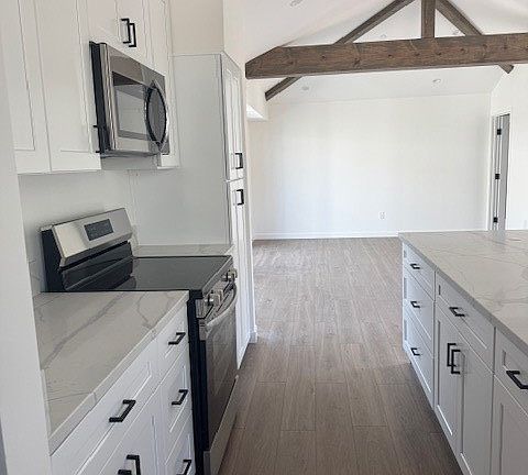 - All Bedrooms Down, Beamed Ceilings, Eat-in Kitchen, Open Floorplan, Recessed Lighting
