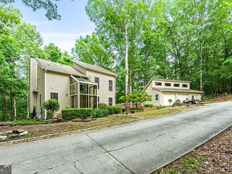 Rustic Country Retreat in Beautiful Coweta County! Nestled on 5 acres of serene countryside, this stunning rustic home is a true escape! Featuring 2,262 square feet above grade plus a full, finished basement spanning over 1,000 square feet, complete with a bar-perfect for entertaining. Gorgeous sunlight pours through the expanse of windows in the foyer and back of the home, filling every space with warmth and natural light. Step outside onto the dreamworthy two-story back deck, offering plenty of room to relax, enjoy the views, or unwind in the hot tub. A walkway leads to a spacious detached 2-bay garage and workshop, ideal for hobbyists or extra storage. A rare find with privacy, space, and convenience-this Coweta County gem is ready to welcome you home!