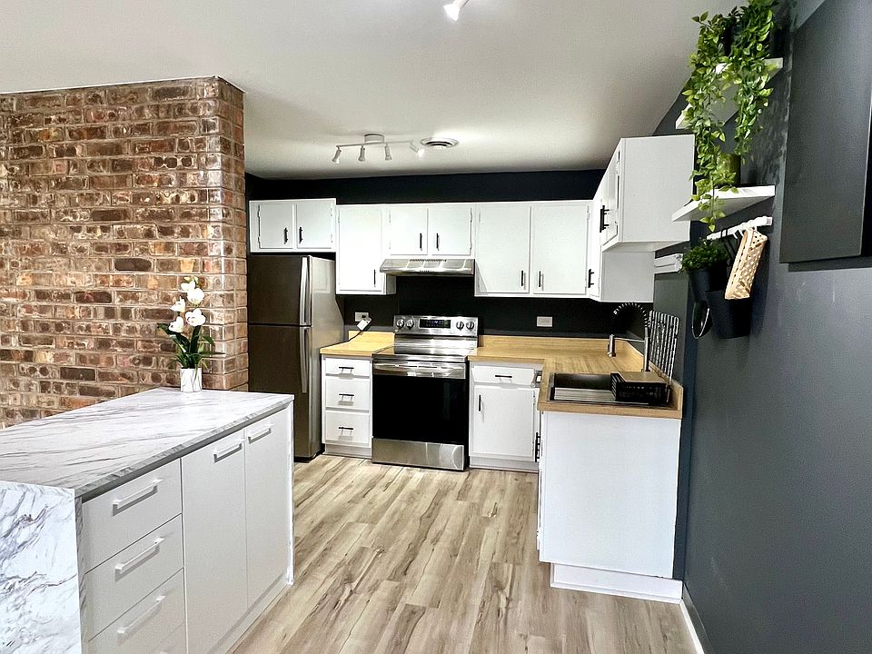 New and modern finishes. Open concept with a kitchen island for entertaining guest, dinning and living aria all combined. Exposed brick wall and a fireplace for extra cozy feel.