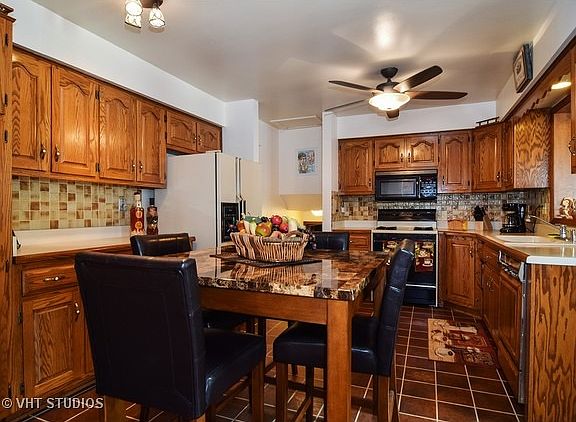 Custom built much larger than typical split in Lancer park! Extended living room with vaulted ceiling, formal dining & eat in kitchen! Hardwood floors, skylites, furnace & air 6 yrs. Replaced vinyl siding, roof 4 yr, driveway 3 yrs. Backyard paradise fenced with huge Trex deck, hot tub, koi pond! Large 2 car detached garage! Fabulous sunroom off kitchen, concrete crawl with great storage space, can easily convert 1/2 bath to full. This home is immaculate & so unique! Sought after schools and great park district. Outstanding location!