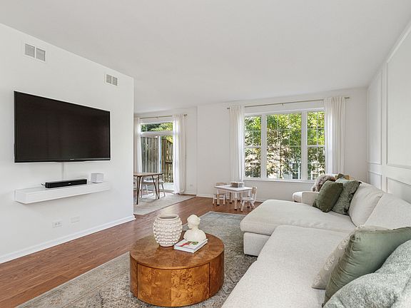 Elegant simplicity is the best way to describe this three-bedroom plus loft townhome in the highly sought-after Heritage Ridge neighborhood. The entire space feels light and fresh and the floorplan features all the elements you want for easy living. A generously sized main living area features dramatic high ceilings and large windows to enjoy views throughout the seasons. It wraps around and opens to the dining and kitchen area where you'll find abundant cabinetry, sleek, white appliances, and open shelving to display your favorite dishes or decor. Upstairs, you'll find two bedrooms and a versatile loft. The lovely primary suite features a large walk-in closet and primary bathroom with dual sink, vanity and walk-in shower. The English basement was recently remodeled with on trend finishes and provides additional living space perfect for movie or game nights, play space, exercise, or hobbies. It has a separate room ideal for a private office or guest space and there is also a utility area for storage. You'll enjoy the beautiful outdoor space on the deck, with views of trees and greenery. The owner has taken exceptional care of this home and has updated the following mechanicals and appliances: furnace (2023), air conditioner (2023), washer and dryer (2022), dishwasher (2022), water softener (2022), water heater (2022). Other upgrades include: modern ceiling fans, all white doors, and trims, wood laminate flooring, and recess lighting. The location can't be beat-near shopping, restaurants and so many conveniences. It's also a quick trip to a variety of recreation spots, Batavia's riverfront and Geneva's riverfront and charming shops and restaurants. Rentals are not allowed. See additional information for all rules and regulations, which includes homeowner versus association responsibilities.