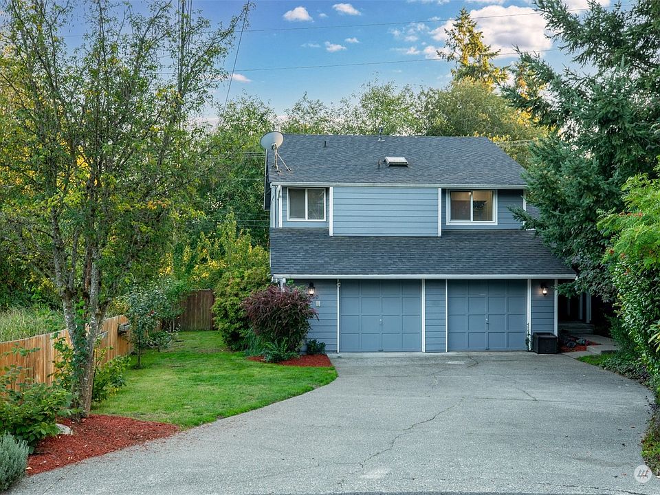 Mid-Century Modern dream home in the heart of University Place, WA! 2 separate divided lots totaling over 1/2 acre, plenty of outdoor space for activities and potential expansion. Quiet neighborhood at the end of a cul-de-sac backed by green belt. Surrounded by mature landscaping & an abundance of trees providing a peaceful and natural setting. Garden areas as well as fruit & nut trees. Fully fenced with sprinkler system & home is wired for future generator & hot tub. Great trilevel floor plan with vaulted ceilings & all 4 bedrooms on the upper level. Samsung black stainless steel appliances in kitchen, gas fireplace in FR & glass patio doors from both levels with wood decks for entertaining.