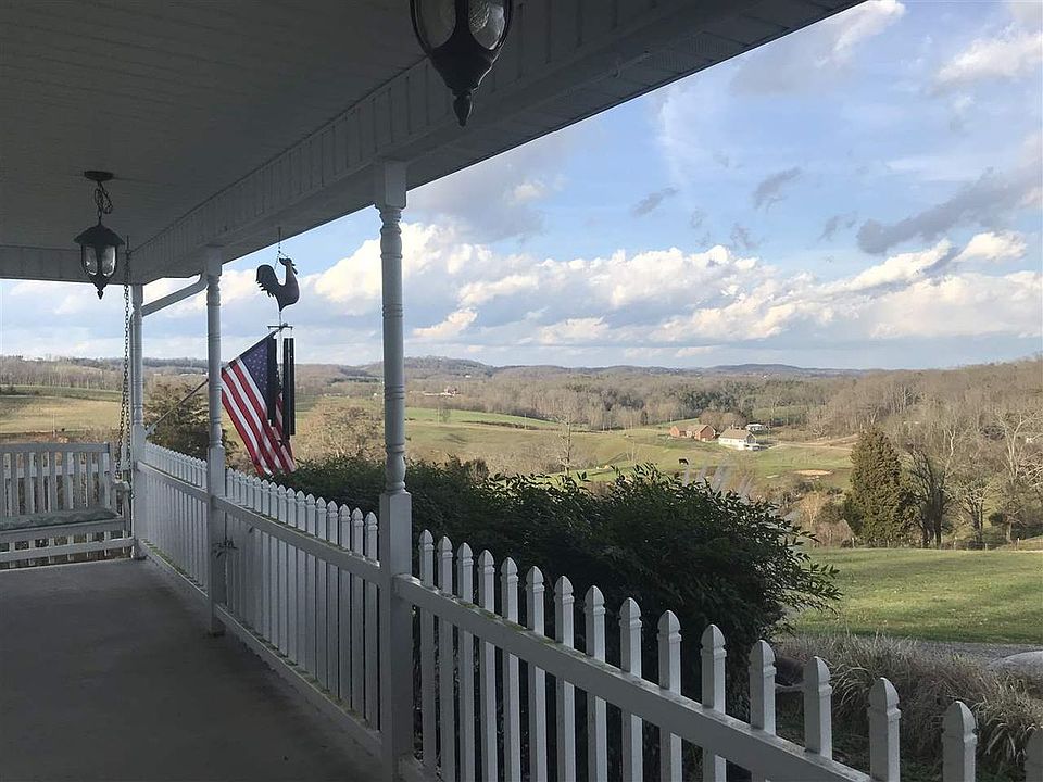 What a wonderful home to raise your family. Eight acres of land with beautiful views of the mountains. Consists of two car main level garage and also a lower garage. Awesome area in the rear of the home to entertain which is covered that has a wood burning fireplace, electricity, room for outdoor furniture, and a television. Super nice barn that you can use for equipment storage, work area, critter area, etc. Also includes a chicken coop. This property is a must see! It sits back off of the road with a long drive which gives much privacy.