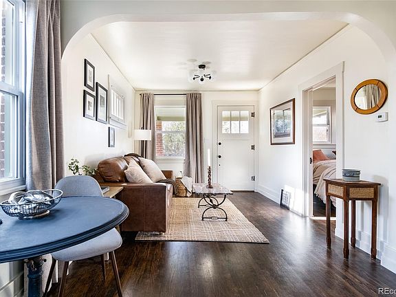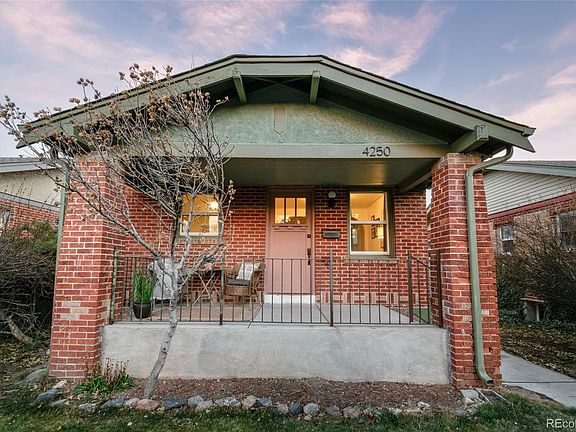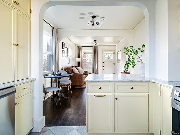 This beautifully remodeled Denver brick bungalow in the trendy Sunnyside neighborhood blends historic charm and luxurious touches. From the inviting covered front porch, step into the natural light-filled living area highlighted by its Craftsman details including elegant archways and newly refinished original hardwood flooring. The living room flows into a cozy dining area with large windows and additional seating at the kitchen peninsula. The custom built kitchen was thoughtfully designed to enhance the character of the home. High end finishes in the kitchen include Carrara marble countertops, ceiling height custom cabinetry, an appliance garage for maximized storage, a pot-filler, and stainless-steel appliances. The main floor primary suite features a walk-in closet and a spa-like en-suite bathroom with freestanding soaker tub, double vanity, and an expansive glass-enclosed shower. The finished basement has a large laundry room and a second primary suite (non-conforming) with a walk-in closet and en-suite bathroom. The fully fenced backyard with a covered back patio leads to a detached oversized 1 car garage and additional parking spaces in the alleyway. A front and backyard sprinkler system was installed last year. Situated in a quiet neighborhood, this timeless 1920s home is conveniently located within short walking distance to parks, restaurants, and coffee shops.