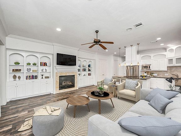Experience elegant living in the coveted West University area! This townhome offers 4 bedrooms, 3.5 baths, abundant storage, and a thoughtful layout. The open living area features custom built-ins and a cozy fireplace, which flow seamlessly to a covered patio for outdoor retreat. An updated chef's kitchen with granite counters, gas cooktop, vent hood, pantry, and refrigerator makes entertaining effortless, while a private study provides the ideal workspace. Upstairs, the primary suite impresses with vaulted ceilings, fireplace, private balcony, and a spa-like bath with dual vanities, soaking tub, separate shower, and generous storage. Three secondary bedrooms, a computer niche, and laundry complete the upper level. Enjoy the convenience of a private driveway, proximity to West U Elementary, Judson Park, Downtown, and the Texas Medical Center, which delivers the perfect balance of luxury and location.