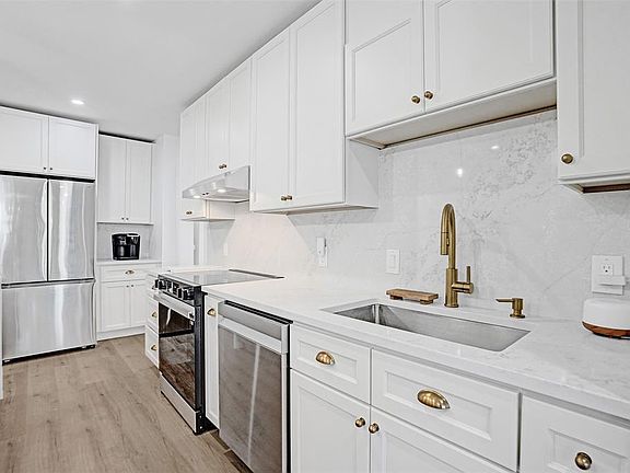 Porcelain tile in bathroomsModern wood kitchenStainless steel appliancesSoft-close cabinetryShaker doors