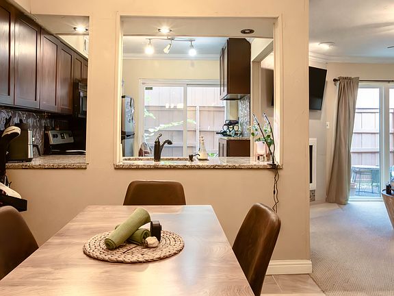 Enjoy your morning coffee or unwind in the evening on your private patio just off the kitchen. The kitchen is filled with natural light and features stainless steel appliances, granite countertops, and upgraded wood cabinetry.