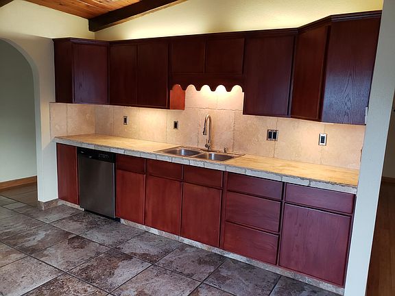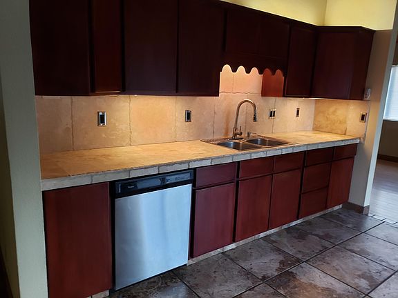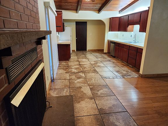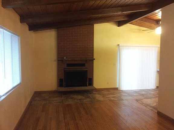 Large 2200 sq ft, 3 bedrooms, 2 baths, 2 car garage house on one level with vaulted ceilings and natural stone (travertine) countertops. Open floor plan, fireplace, utility room with washer & dryer hookups, tiled floors in bathrooms and utility room, hardwood floors throughout the house, and low- maintenance front and fenced back yard in desirable neighborhood and schools. Forced air central heating and cooling (heat pump).