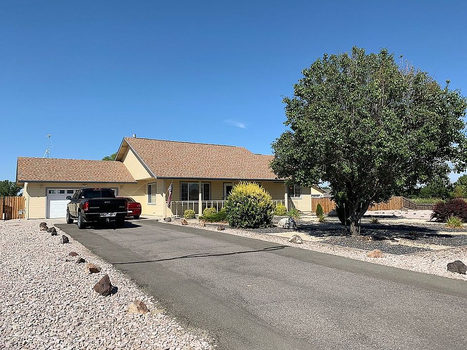 Beautifully maintained single story, ranch style home. 1.67 acre property with white gravel over the 1 acre backyard area that means no dust when the wind blows. Attached 2 car garage and detached 2 car garage and additional 10' x 16' storage shed gives tons of space for work, storage and fun. Entire back yard is surrounded by 6' fence which allows for pets to have lots of room. New septic system in 2017 and new AC in 2019. New house paint in 2020. All new stainless dishwasher, gas range, and ice maker refrigerator freezer added in 2020. 9' x 14' walk-in closet off of master suite and a 14' x 14' sun room that are fully finished add to the luxury of this home. Wonderful 14' x 23' covered patio with access from the master and the sunroom is perfect for entertaining. The detached 2 car garage is fully finished with an additional attic storage space with drop-down stairs. Extra, full size refrigerator/freezer in the attached garage. Whole house, two stage carbon filtration system by Pelican for water purity. Electronic descaling system by Eddy that greatly reduces any mineral build-up in the piping. 5-stage Reverse Osmosis water filtration system in the kitchen for crystal clear, pure drinking water and ice. Like new LG Waveforce high capacity washer and dryer. 15' in diameter, 42" deep, new Intex swimming pool complete with pump, filter and all accessories for summer fun. Single pull start lawn mower included. Sun room added in 2008, and detached 2 car garage added in 2009. $5,000 credit to buyer at closing for carpeting. (75) 427-8901