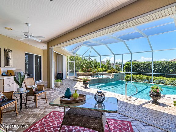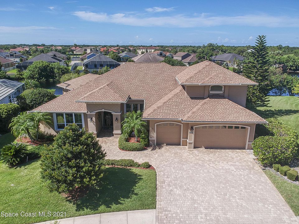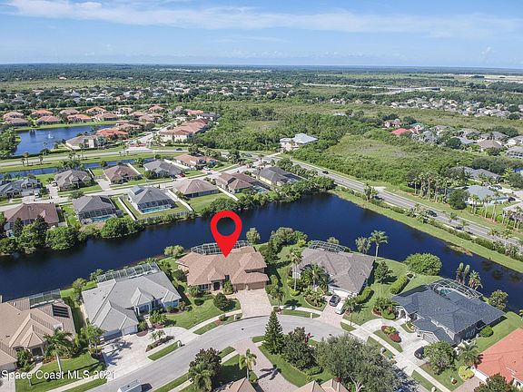 Custom lakefront estate in prestigious St. Andrews Isle! Lushly landscaped & professionally decorated! This well-appointed home sweeps over 3,216 sqft perfectly laid out w/4bdrm/3bath/3gar crowned w/coffered & tray ceilings. Rich wood floors underscore impressive entertainment rm/4th bdrm. Elegant dining rm flows into a large great rm. w/triple sliders cascading to the spa, infinity pool, lanai & outdoor grill overlooking the lake. Celebrate culinary art in a kitchen w/center island, decked out w/a cache of cabinetry, glass tile backsplash, gas cooktop, new quartz counter, bfast nook & large walk-in pantry. Downstairs master presents 2 closets w/organizers, double vanities & walk-in shower. Upstairs, another sizable en suite master. Spacious guest rm w/sliders to its own private courtyard