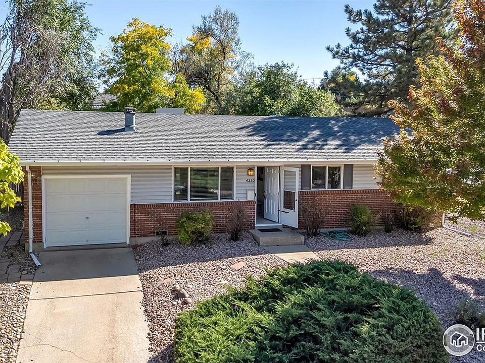 Welcome to this beautifully remodeled one-level ranch-style home, perfectly situated in South Boulder-just steps from a convenient pedestrian underpass beneath Broadway and a short walk to the vibrant Table Mesa Shopping Center. With 3 bedrooms and 1 full bath, this charming one-level home is move-in ready and thoughtfully updated throughout. Inside, you'll find a bright and open-concept living, dining, and kitchen area that offers a seamless flow and a warm, welcoming atmosphere. The living room features a cozy wood-burning fireplace with a classic stone hearth and a large picture window that captures seasonal views of the stunning Flatirons. The remodeled kitchen is both stylish and functional, featuring soft-close cabinets and drawers, a tasteful tiled backsplash, breakfast bar seating, and stainless steel appliances-ideal for home chefs and everyday living alike. The updated bathroom includes tile flooring and a beautifully tiled tub and shower surround, adding a touch of luxury to your daily routine. Step outside to enjoy a private, fenced backyard with mature trees and a sun-drenched patio-perfect for morning coffee, weekend gatherings, or quiet evenings under the stars. Additional highlights include a newer furnace, hardwood floors under existing laminated flooring, and an attached, partially heated garage with washer/dryer and a workshop with built-in workbench, offering great space for projects, storage, or keeping your car warm through the winter. With modern upgrades, classic charm, and a convenient South Boulder location, this home offers the best of Boulder living at an entry level price.