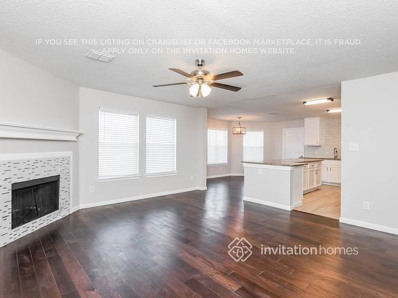 Home Features and Amenities: Air Conditioning, Fenced Yard, Fireplace, Garage, Granite Countertops, Hardwood Floors, Kitchen Island, Long Lease Terms, Pet Friendly, Smart Home, Stainless Steel Appliances, Tile, W/D Hookups, and professionally managed by Invitation Homes.
