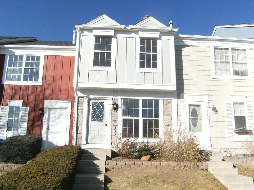 Two story Town Home with two big bedrooms, a full bath, nice fireplace and unfinished basement. 1624sf, Reserved parking and fenced back yard. Near Peterson and Ft Carson. Sun Stone Community with pool and play ground. Maintenance free.