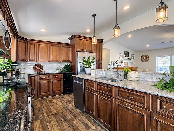 Welcome to this beautiful completely remodeled home featuring an inviting open floor plan with elegant arch openings that create a seamless flow and add charming architectural detail. The luxury kitchen features granite countertops, a stylish tiled backsplash, and a built-in wine fridge, perfect for both everyday living and entertaining guests!