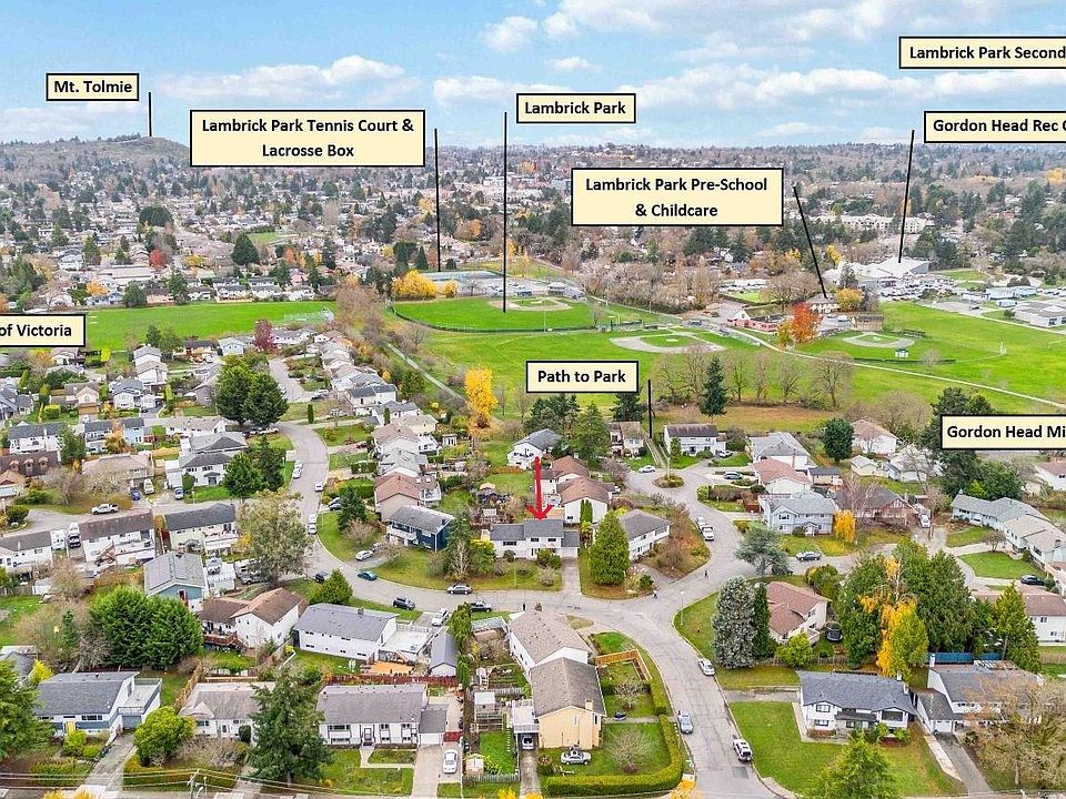 LAMBRICK PARK/GORDON HEAD - WALK TO PARKS, SCHOOLS, REC CENTRE + MORE! Ideally located on a quiet tree lined street in one of Victoria's most desirable & family friendly neighborhoods. 4 bed, 3 bath, 2410sf home on a large, landscaped & fenced/gated 6,538sf/.15ac lot. Exuding street appeal & perfectly positioned just a short stroll to Lambrick Park, Gordon Head Rec, tennis court/lacrosse box, baseball fields, schools, public transit, mins to Uvic, Mt. Tolmie & Mt. Doug & only 15 mins to downtown. Be impressed w/the abundance of natural light thru a profusion of picture windows. Spacious living rm w/cozy electric fireplace. Dining rm easily accommodates large family dinners & opens to the deck - perfect for BBQs & outdoor entertaining. Kitchen boasts plenty of oak cabinetry & eating area. 3 generous bedrooms including primary w/2pc ensuite & 4pc main bath. Down: 4th bed, 3pc bath, laundry rm & oversized family/rec rm w/gas fireplace. Bonus: separate entrance from garage to lower level!