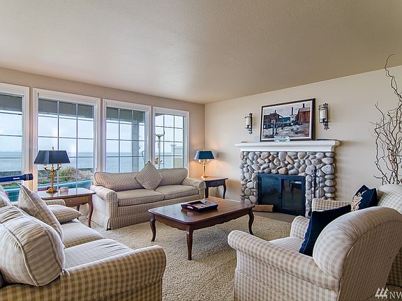 Enjoy no bank, beachfront living with gorgeous, peaceful westerly views of the Bay. Imagine spending every evening watching the sun set over the water. Master with en suite bath. Upper deck as well as lower deck and patio for maximum view enjoyment and entertaining. Relax by the cozy fireplace in the living room on those chilly evenings. Community pool, golf, boat launch, tennis courts, marina. Vacation home or live here full time. Would also make a great VRBO! Check out the virtual tour video!!