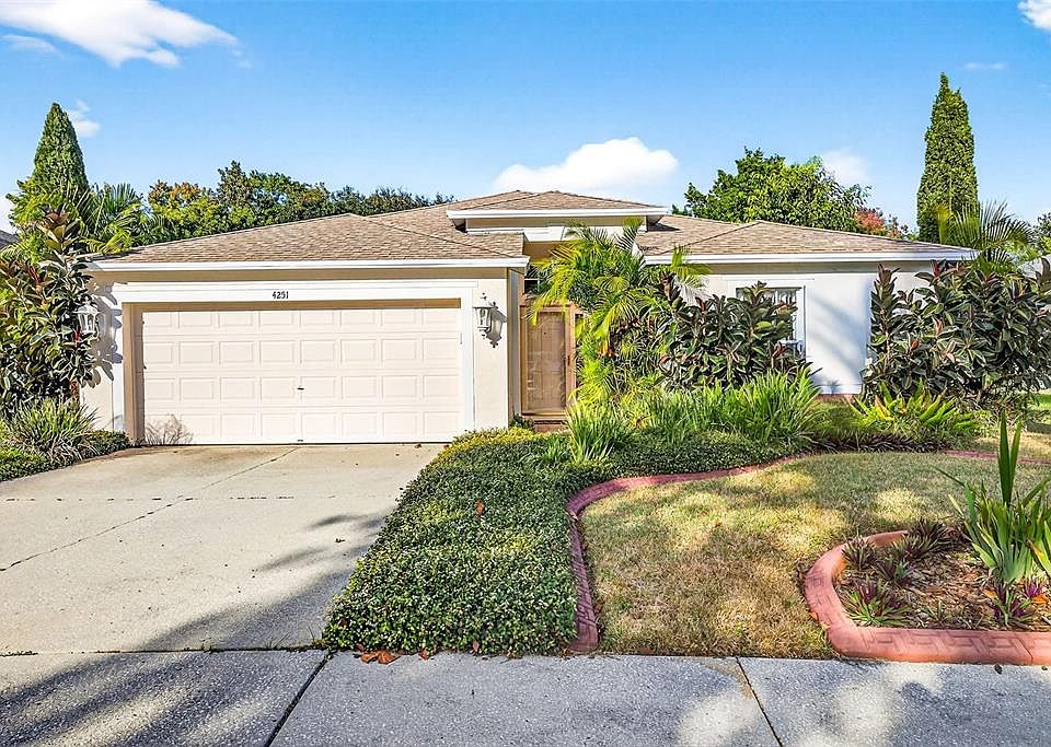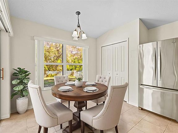One or more photo(s) has been virtually staged. Step into possibility with this spacious 4 bedroom / 2 bath home in the heart of Land O Lakes! Nestled on a generous lot with strong bones and endless potential, this property is perfect for buyers ready to personalize and build equity from day one. With NO CDD fees, a very low HOA, and NO FLOOD insurance required, this home is truly a rare gem. Upgrades include: New Roof (2023), Water Heater (2022), A/C (2015), and Updated Electrical Panel with sub-panel pre-wired for a generator. Residence sits on an oversized, 101-foot-wide fenced lot with conservation views, offering both privacy and peaceful scenery. Step inside to discover 10-foot ceilings, a soft, neutral palette, and large windows and sliding doors that fill the home with natural light. The welcoming foyer opens to a spacious formal living and dining area, ideal for entertaining. The kitchen is a chef's dream, offering ample cabinetry, stainless steel appliances, and a convenient bar area for casual dining. A breakfast nook and family room, both with sliding glass doors, seamlessly connect to the tiled patio, perfect for enjoying outdoor activities. The thoughtfully designed split-bedroom floor plan ensures comfort and privacy for everyone. Retreat to the primary suite, where you’ll find a large picture window, dual walk-in closets, and an en suite bathroom featuring a soaking tub, separate shower, double vanity, and grab bars for added safety. The expansive backyard features mature palm and fruit trees, brick walkways, and multiple garden spaces. There’s plenty of room to add a pool or create your dream outdoor oasis. This home is ideally located near top-rated schools, shopping, dining, golf courses, and just minutes from State Road 54, with easy access to Tampa and major highways.