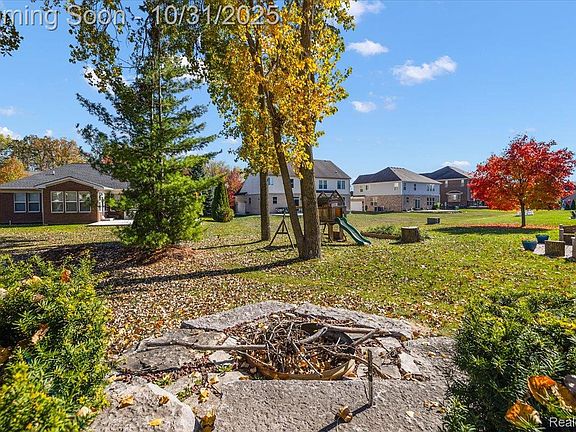 Welcome to this stunning 4-bedroom, 3.1-bath single-family home in the heart of Sterling Heights! Featuring timeless hardwood floors throughout the main level, this home combines warmth, style, and functionality. The living room & dining room spaces are perfect for entertaining. The spacious kitchen is a chef’s dream with granite countertops, a large island, bar area with beverage fridge, and plenty of cabinetry and walk in pantry for storage. Relax in the inviting family room with a gas fireplace, perfect for cozy evenings. Main floor office with door for privacy. Upstairs, you’ll find 3 full bathrooms & 4 generously sized bedrooms, including an extra-large primary suite with an electric fireplace, sitting room, and enormous walk-in closet. The basement features 3 egress windows, extra-high ceilings, and is plumbed for a future bathroom—ready for your finishing touch. Step outside to enjoy a beautiful private deck & paver patio, ideal for entertaining or quiet relaxation. Additional highlights include a 3 car garage with epoxy floor, laminate flooring on the second floor, and thoughtful upgrades throughout. This home offers the perfect blend of luxury and comfort in one of Sterling Heights’ most desirable neighborhoods.