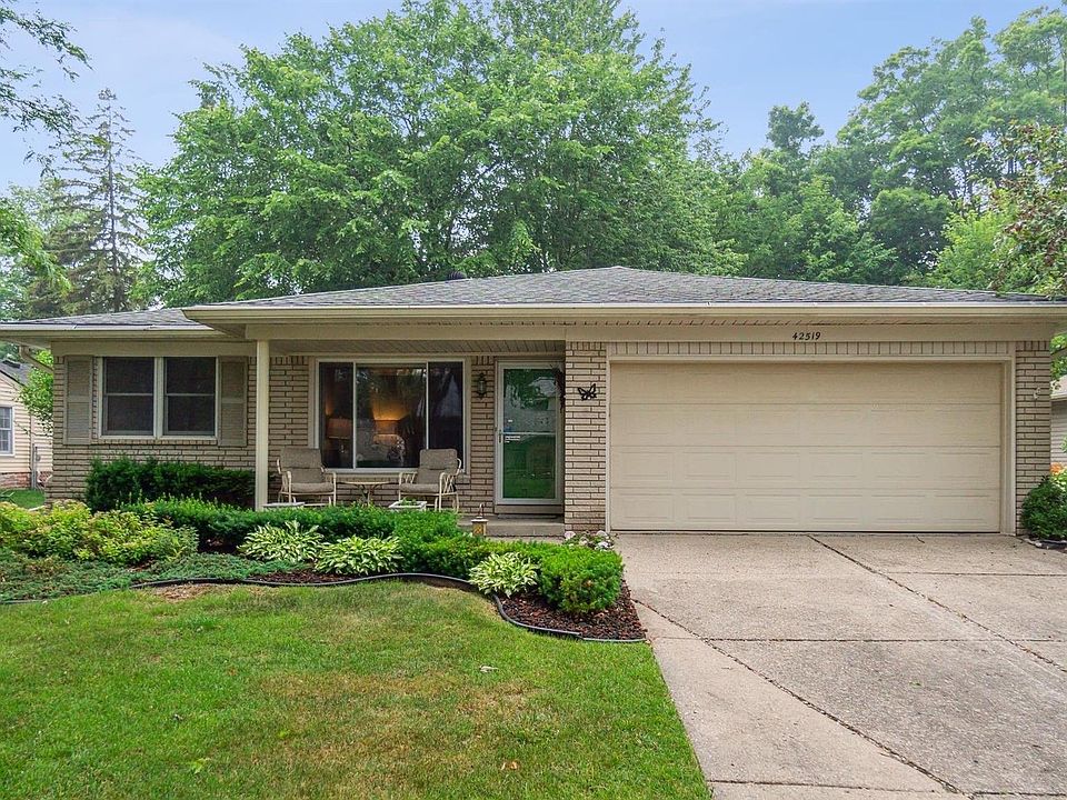 Impressive Meadowbrook Glens ranch on premium lot backing to woods! Contemporary floor plan features cathedral ceilings in the kitchen and family room, and a separate formal living room. The entry level offers almost 1,500 sq.ft. of living space with 3 bedrooms and 1 1/2 baths. Kitchen has been updated with attractive cabinetry and granite counters. The spacious family room features a fireplace and doorwall to the deck and park-like backyard. Full basement with tiled floor is under the entire home for another 1,484 sq.ft. of space. High efficiency furnace and humidifier new in 2011, updated sump pump with city water backup, updated roof & gutters with mesh leaf guards, and newer garage door opener. Refrigerator, built-in oven & cooktop, and washer & dryer included. This east facing home is located in the highly regarded Novi School District and in close proximity to freeways and lots of restaurants & shopping. Wow! (shed is excluded)