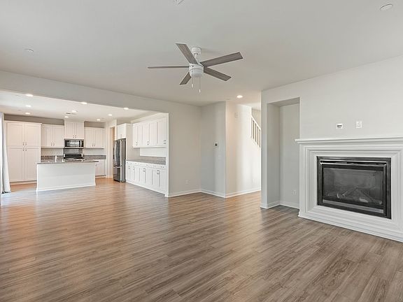 Step inside to a spacious foyer that opens into a bright, open-concept living area, featuring a large living room, inviting family room with a gas fireplace, and a gourmet kitchen designed for entertaining. The kitchen boasts granite countertops, stainless steel appliances, and abundant cabinetry. Downstairs highlights include wood laminate flooring and plantation shutters throughout.