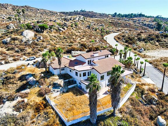 This beautiful gated home located in the desirable Skycrest Estates community. You'll be in awe once you enter the double door entry located on the main level (2nd. floor) with three brick fireplaces throughout the home. Main level features a formal dining room, kitchen with great lighting from the skylight above, office, and three master bedrooms. Enjoy the great room and balcony with gorgeous views. The first floor has two master bedrooms, a family room with fireplace, and recessed lighting. The third floor includes a master bedroom with walk in closet, fireplace, and French door leading to a private balcony overlooking the stunning mountain views. This property has a total of three balconies with great views of the entire San Jacinto Valley, close to Simpson park that's great for hiking and biking.