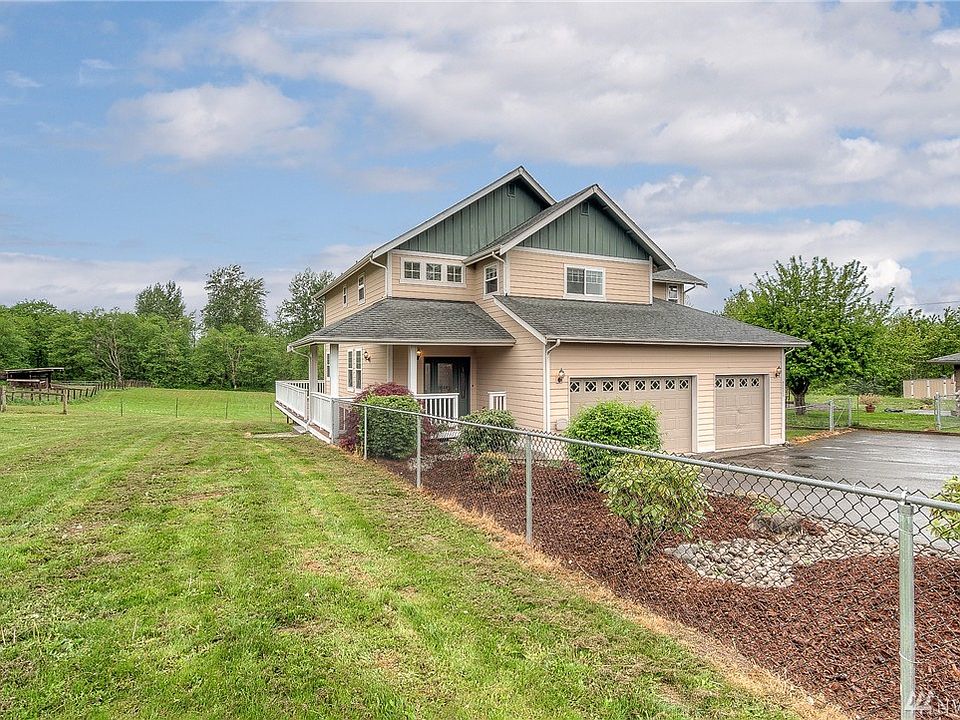 This charming home is located on edge of town on almost 2 acres. Nice open floor plan, large wrap around porch and deck overlooks pastoral setting. 3 bedrooms plus bonus room, den, and study/computer room. Granite counters, tile accents. Fresh paint and new stainless appliances. Pergo flooring through out first floor. Attached 3 car garage and 2 car detached garage/shop that is finished and heated. Another small outbuilding.
