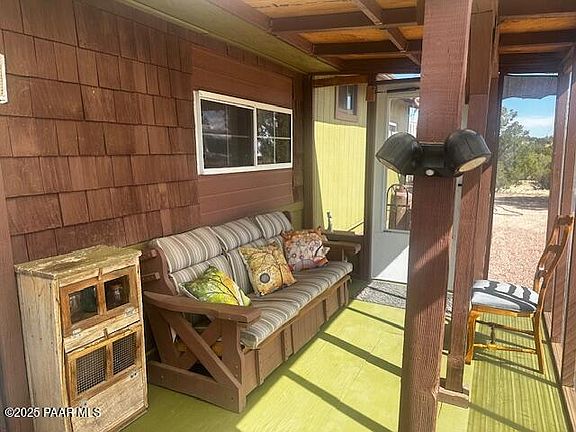 Artist's Home. Don't let the heat get to you--the whole house stays extra cool with the solar powered swamp cooler! Eclectic touches add warmth and hospitality to this cute cottage. Perched on a hill with awesome panoramic views, this two bedroom one bath home has plenty of room for a small family. Screened porch is perfect for enjoying the outside. There are a couple of greenhouses. Several water storage cisterns. Water catchment. Forty acres are fully fenced. Good internet availability thru Hughesnet, Verizon or Starlink. This is a water haul area and is off-grid. Enough solar to power the house.