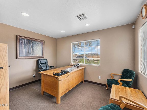 Located near the freeway and close to a thriving commercial park, this one-of-a-kind property offers flexibility for a wide range of business or investment opportunities. Fully secured with an 8-foot block wall fence and an automatic gated entrance, it provides privacy, protection, and functionality for your operations. The grounds include two spacious outbuildings, four sheds, and a covered parking area with four front spaces—perfect for trucking, landscaping, construction, warehousing, or light industrial use. Inside, you'll find a welcoming lobby, a kitchen area, two bathrooms, a private closed office, and a conference room with a sink—ready to accommodate staff, clients, or day-to-day operations. Originally a 4-bedroom, 2-bathroom residential home, it could be converted back to a full residence if the buyer desires, giving the property dual-use potential. With its prime location near the freeway and business district, this property is more than just real estate—it's a chance to invest, expand, and build long-term success.