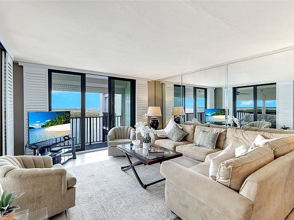This beautifully and tastefully updated 3 bedroom, corner penthouse showcases sweeping, unobstructed views of Estero Bay and beyond. Elegant plantation shutters frame every window, while the expansive open-air lanai invites you to enjoy coastal breezes and breathtaking sunrises while being entertained by an abundance of SWFL magnificent birds, manatees and dolphins. Inside, each of the three spacious bedrooms offers its own walk-in closet, providing exceptional storage and comfort. Additional conveniences include a private storage closet and electric storm shutters for peace of mind. The unit includes one undercover space and there is ample parking for guests. The complex has recently gone through total exterior renovation to include new roof, exterior painting, lanai rails and repaved parking lot. Just a short walk brings you to the community’s private beach, offering effortless access to the Gulf’s sugar-sand shoreline. Boat slips for sale or lease are within easy walking distance from your unit. The community itself delivers resort-style living at its finest, featuring a beautifully appointed clubhouse with full kitchen, outdoor grill and fishing table station all perfect for entertaining. Residents enjoy an extensive system of safe walking paths, an Olympic-size heated pool, tennis and pickleball courts, a driving cage, putting and chipping greens, and a professionally equipped fitness center. This extremely rare penthouse opportunity comes fully furnished and blends luxury, comfort, and unmatched amenities available in one of the most desirable locations on Estero Bay. The South Island location offers unlimited options for any lifestyle choice. Utilize the free island trolley to the North end for a thriving nightlife atmosphere or take a short drive south to Naples or Bonita Springs for a variety of excellent restaurants and shopping.