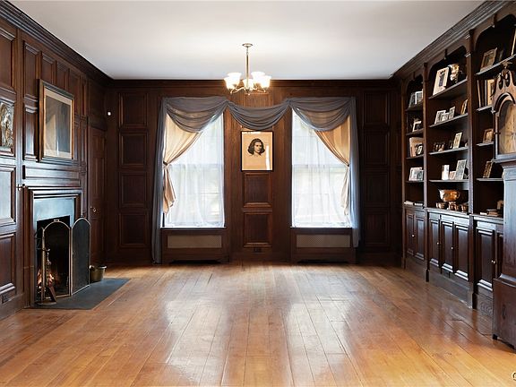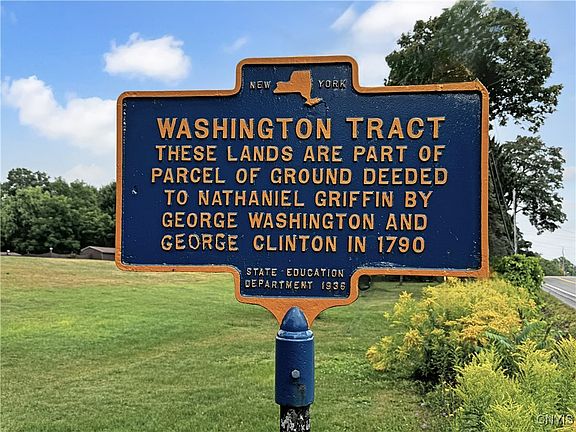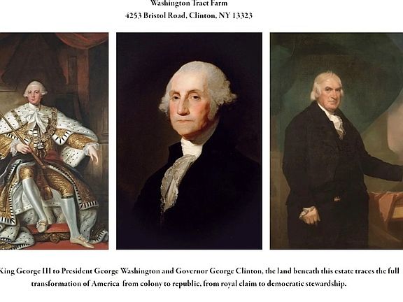 Washington Tract Farm: A Federal-Era Estate Rooted in American History. Built in 1795 on land gifted by President George Washington and Governor George Clinton, Washington Tract Farm is more than a home. It is a living heirloom. Located in Kirkland, just beyond the tree-lined streets of Clinton, New York, this Federal style estate offers a rare chance to inhabit America’s early story. The residence rises with quiet grandeur, its symmetry, tall pilasters, and elliptical windows exemplifying Federal design. Inside, hand-planed doors, mantels, and wide-plank floors attributed to early architect Isaac Williams endure. Most remarkable is the oak-paneled library, designed by W. & J. Sloane of New York City, the famed luxury design house that furnished the White House, the Breakers, and Rockefeller, Whitney, and Vanderbilt homes. Modeled on Hampton Court, the library is a scholarly jewel echoing the intellectual spirit of nearby Hamilton College. Spanning 5,084 square feet, the estate offers five bedrooms, four baths, and four fireplaces. A grand hall, parlors, and dining spaces flow with ease, while private quarters and a walk-up attic preserve intimacy and adaptability. Modern systems including electrical, plumbing, heating, and water filtration support today’s living while preserving the home’s historic soul. Set on 4.5 acres, the property is anchored by a pre–Civil War wrought iron fence and stone piers. Mature maples, heirloom plantings, rebuilt stone walls, and outbuildings recall its agrarian past. Moments from Clinton village and Hamilton College, the estate balances permanence with cultural vitality. Washington Tract Farm is not merely a residence. It is an architectural treasure, a cultural neighbor, and a piece of America’s enduring story.