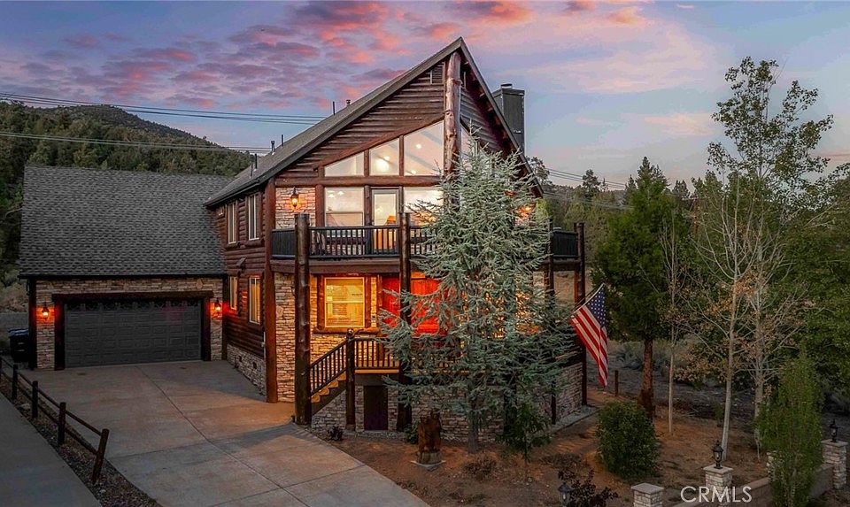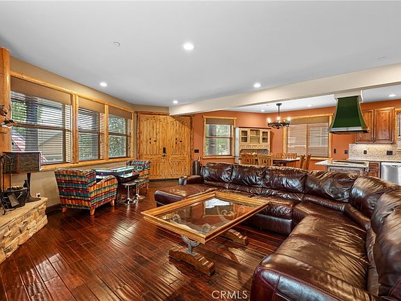 Nestled in the upscale Bear Loop neighborhood, this stunning mountain chalet offers breathtaking views of the grand ski slope from its balcony and primary suite/penthouse. The primary suite boasts its own full kitchen, fireplace, spacious bathroom with a jetted tub, large steam shower, and private patio. This home is perfect for entertaining, with its expansive great room and open kitchen/dining area creating an ideal setting for friends, loved ones, or even your own private mountain retreat. The downstairs primary suite features its own fireplace, exquisitely designed bathroom, and an outside patio with an 8-person spa with panoramic views of the surrounding mountain terrain. For those who prefer electric vehicles, the home is equipped with an electric car charging station, 220V wall connector. Numerous smart home upgrades have been made, including Wi-Fi smart lighting and climate control. Each bedroom, has private access so it can be individually rented or used in its entirety. Most of the homes furniture and appliances are included. This gem in the mountains stands as a remarkable testament to luxury mountain living and is within 4 miles of Snow Summit and the Big Bear Mountain Ski Resort. Your lifetime memories are here for you to cherish.
