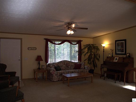 A river runs through it! This gorgeous 8 acre parcel provides the perfect setting for this 4 bedroom home. All on one level, enjoy a private master suite, open floor plan, and a huge kitchen. Three additional bedrooms and a huge family room finish out the house. Enjoy relaxing in front of a crackling fire in the wood burning fireplace. Outside you will love the 3 car garage (2 over heard doors) a deck spawning the length of the home, a storage shed, privacy, wildlife, and a great view and easy access to the Poplar River!