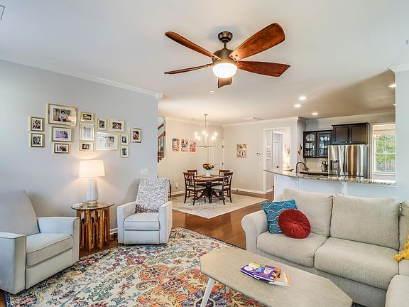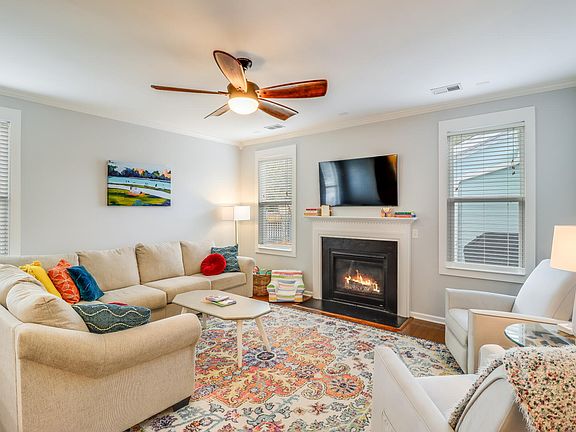 Enjoy close proximity to Carolina Park's vibrant 3-acre park in this charming well-maintained, 4-bedroom, 3-bath home. Set on a spacious corner lot, this home offers lots of indoor and outdoor options for relaxing & entertaining. The main level features a welcoming open living area with kitchen, living & dining areas accented by a cozy fireplace. A flexible guest bedroom, full bathroom, separate formal dining room and mud room/drop zone offer great additional space for organizing and accommodating family and friends.Upstairs, the primary suite spans the front of the home and includes a private deck and an ensuite bathroom with a double vanity, water closet and extra closet space. Two additional generously sized bedrooms and a convenient...... laundry room complete the second floor. Outside, the large fenced-in backyard offers fantastic space for effortless entertaining, including the roomy screened porch and open patio. Plus, you'll enjoy easy access to the garage through the screened porch or the paved walkway connecting the garage to the home. With sturdy cement plank siding, this beautifully maintained property is ready to welcome you home!