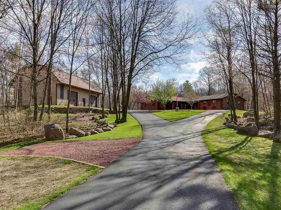 Overlooking paradise from your back porch! Exceptionally maintained, custom built log home that offers 5 MOL acres of quiet retreat! Beautiful landscaping with natural views, and plenty of wildlife visible from many rooms of the house. Vaulted ceilings in living room designed with half log walls. Floor to ceiling cobble stone fireplace with high efficiency insert installed in 2007.Current homeowners utilize wood from property to heat home all winter long with gas furnace as backup(500 gal LP tank on property). Home includes two newly built composite decks built in 2015 where you can enjoy the sounds and sights of nature or grill out for the big game. Walk out basement for easy access to hunt-able acreage. Three season porch accessed off kitchen/dinning room with additional views of small pond. Newly installed wood grain highly durable luxury vinyl planking in dinning room, across kitchen, and down hallway which leads to bedrooms. Both bathrooms have also updated flooring and brand new carpet and tile in living room. Plenty of privacy and lots of open space for the kiddos to run. All this PLUS..... a 30'x50' steel shed with 12' ceiling and a full loft with 8' headroom, great workshop or barn. Fenced in 1/2 Acre with additional 36'x36' fenced in area, potential for raising animals or having a garden. Only 20 mins from Stevens Point this quiet Retreat is located in the Stevens Point School district offering Bannach Elementary School / PJ Jacobs Jr High & SPASH. Wired for fiber optic cable/internet use. Additional acreage could be sold with the home....call for additional information! Current parcel to be divided and surveyed at the time of a contract.
