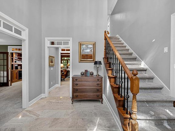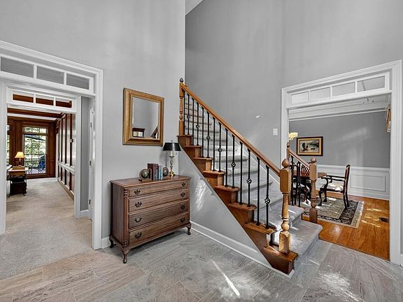 Private home officeCraft roomHome gymEat-in dining areaTwo-story entrywayHis and hers closetsDen with a fireplace
