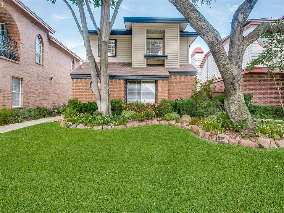 Absolutely darling 3 bed 2 bath. Great drive up to this super well cared for home. Phenomenal location w easy access to George Bush and Dallas North Tollway. Updated kitchen w new cabinets, granite, breakfast bar, nook and hardwoods downstairs. Built-in microwave and electric oven. Glamorous chandelier in dining room makes for great family dinners! Master down w huge closet space and master bath has frame-less shower w separate jetted tub. 2 bedrooms up and a full bath. It's bright and move-in ready w an open living room w fire place, perfect for those chilly winter nights. Zero lot line neighborhood means low maintenance backyard: pergola and some grass. Far North Dallas. Hurry, it won't last long!