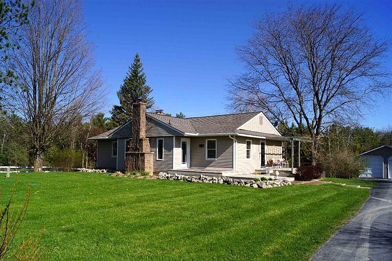 Handsome, updated ranch home in a great location minutes from town on a gorgeous rolling 2.89 ac lot surrounded by woods & fields. Attractive newer stone planting beds & wrap around deck/porch highlight the outside. Inside features a stunning new kitchen w/stained maple cab's & crown, travertine bksplsh w/quartz c-tops, SS apps, bar counter & beautiful travertine stone flr. Kit opens to an appealing DR & LR. Delightful light filled LR w/fieldstone FP & French dr to deck. 1st flr mstr ste (2 former bdrms) w/walk-in closet, blt-in bkcases & hdwd flrs. 2nd bdrm w/hdwd flrs. Spacious updated full bath. Stunning fin W/O LL w/FR w/recessed lighting, lrg windows, gas FP w/slate surround & glass drs to patio & bckyrd, 3rd bed, full bath w/tile flr & walk-in shower. Enjoy the peaceful surroundings w/plenty of open space, mature trees, perennial beds/grasses. 2 car garage & barn w/hay loft & 4 stalls. Updates: new septic field, roof, windows, drs & more. Natural gas being installed by seller.