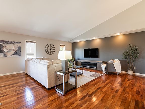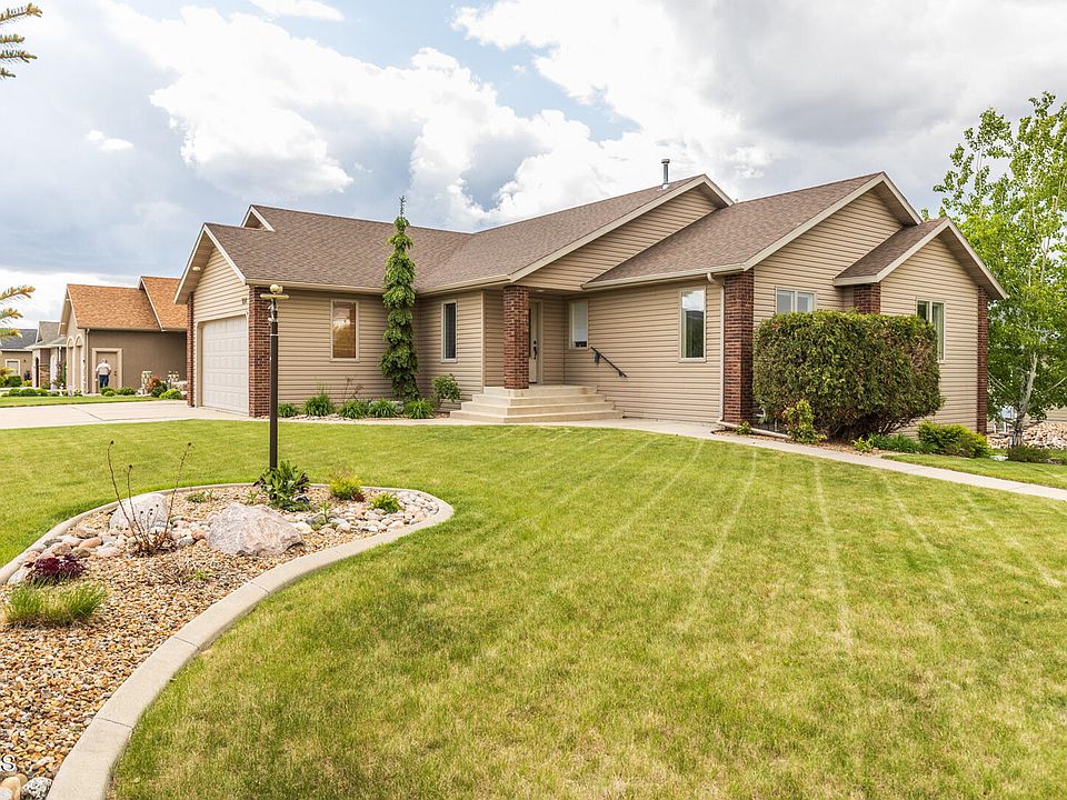 Welcome to this spacious and move-in ready ranch-style home in desirable NW Bismarck, offering over 3,000 sq ft of thoughtfully designed living space. With 4 bedrooms and 3 bathrooms, this home blends comfort, functionality, and modern updates in a prime location. The main level features beautiful hardwood flooring, abundant natural daylight, and scenic coulee views. The kitchen, dining, and living room have the open concept, perfect for entertaining! Enjoy the convenience of the laundry, private primary suite, an additional bedroom and bathroom all on the main level. The fully finished walkout basement offers a spacious family/rec room, two additional bedrooms, and a full bathroom, along with direct access to your private outdoor sports court—perfect for play or entertaining. A covered deck and a 3-stall attached garage add to the home's appeal. Situated near the new Generations Park, this home offers unbeatable access to green space, walking trails, and neighborhood amenities. A must-see in NW Bismarck! Recent updates include fresh interior paint, a new washer and dryer (2020), dishwasher (2021), and upgraded kitchen appliances—microwave, induction range, and refrigerator (2022) Driveway and Garage floor was replaced in (Aug of 2025) Drains were added in the Garage as well in (Aug of 2025).