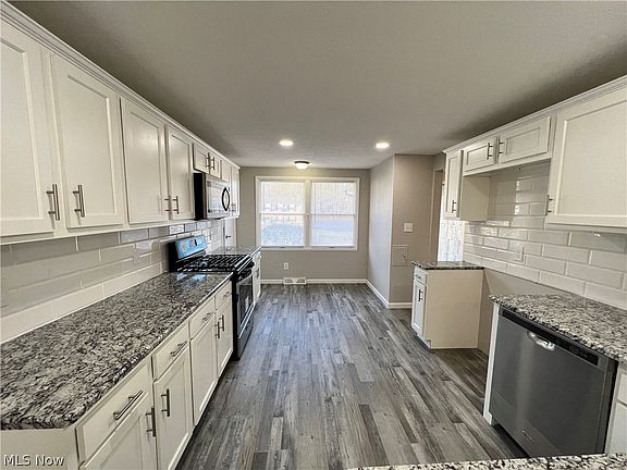 Welcome to this recently renovated ranch located in Stow, OH. This three bedroom two full bath home has a perfect layout of entertaining. As you enter the home to the right is the kitchen with LVP flooring, new stainless steel appliances, granite counter tops, lots of cabinet space, a pantry, and a breakfast bar that looks out into the open family/dining area. The dining rooms openness allows for you to still be connected to the family whether in the living room enjoying the electric fireplace or family room with the real brick fireplace and attached deck off the back. As you loop back around to the front of the house you will see a first floor laundry area tucked in spacious closet. Off that hall is where the main bath and other bedrooms sit, along with the master bedroom and attached bath with walk-in shower. The spacious open basement has been waterproofed with new furnace/ A/C and has a sectioned off room that is perfect space for storage. Outside there are new gutters and downspou